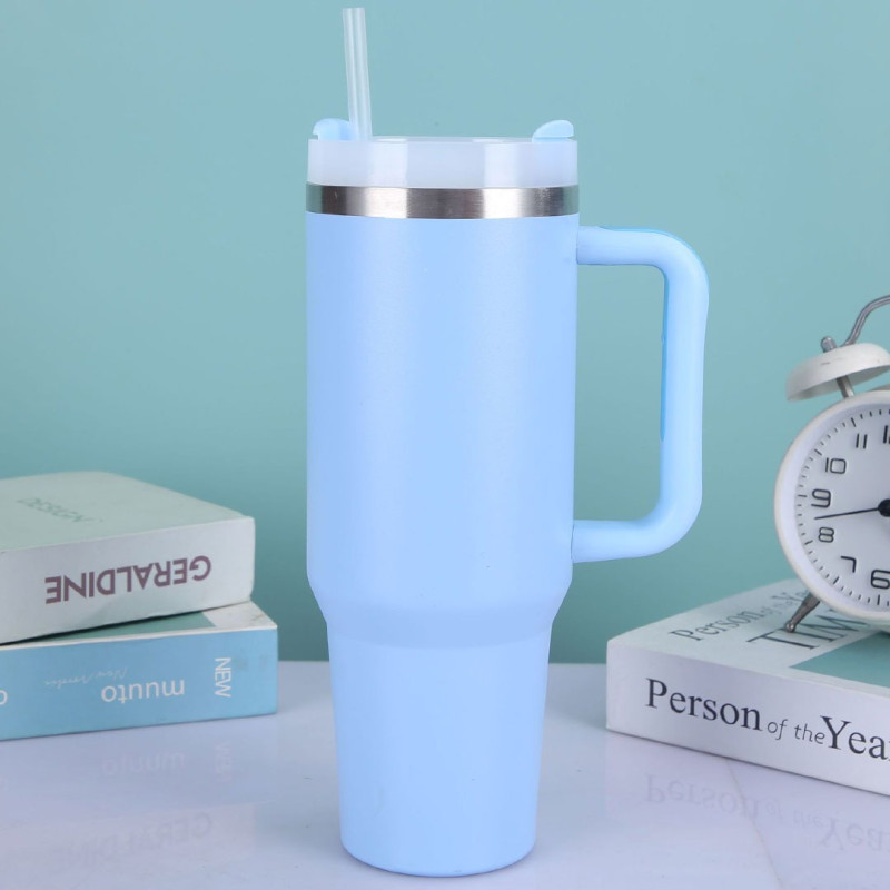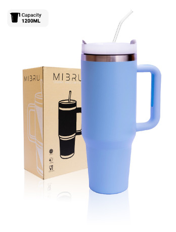 كوب حافظ للحرارة و البرودة مقاس 1200مل لون ازرق سماوي بمقبض وغطاء بمصاصة معزول بسعة 40 أونصة