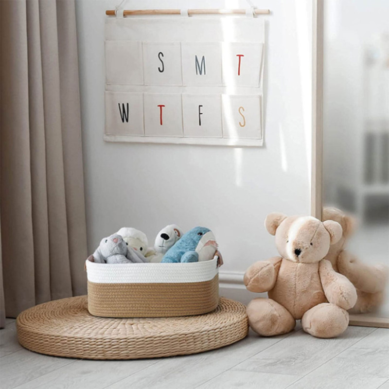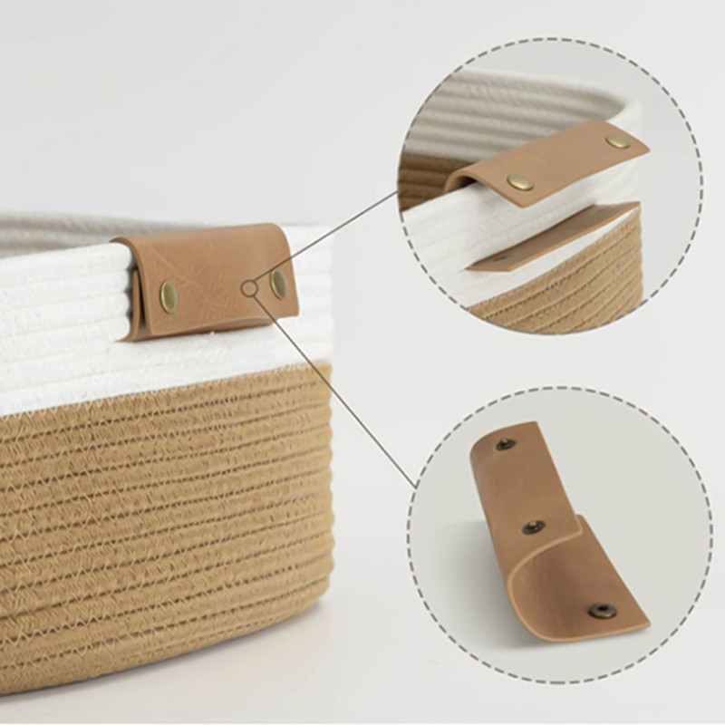 • تصميم بسيط وأنيق: تتميز هذه السلة بشكل دائري ولون بيج هادئ يتناسب مع أي ديكور. كما أنها خفيفة الوزن وسهلة الحمل والتحريك.