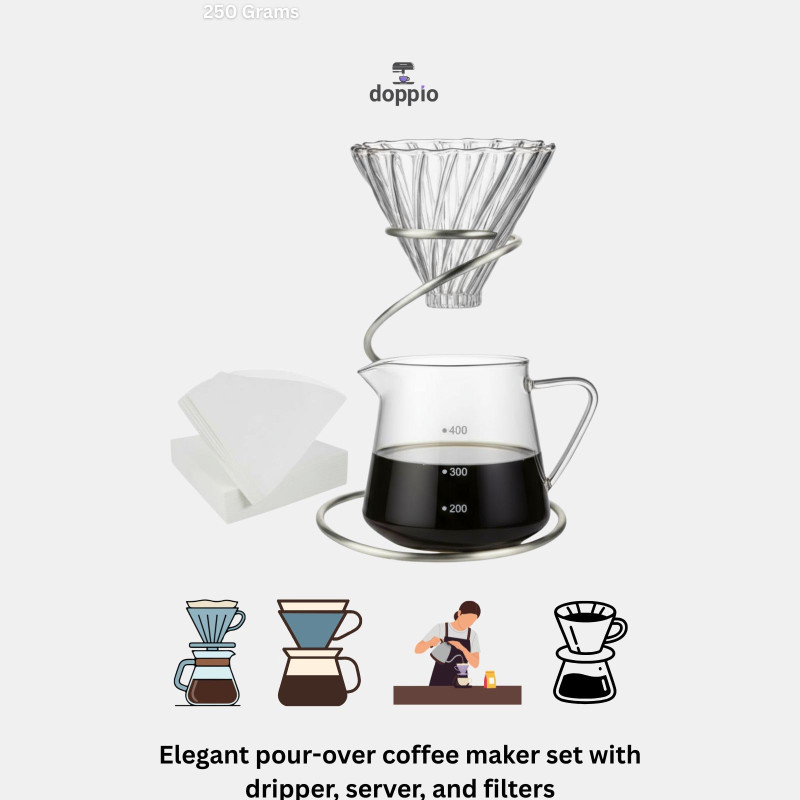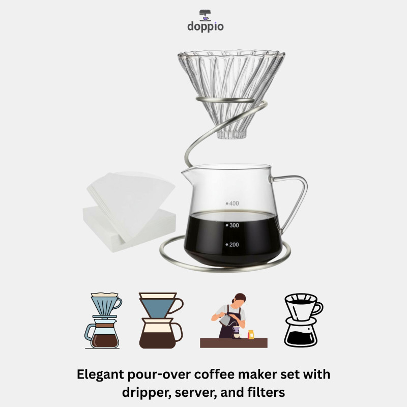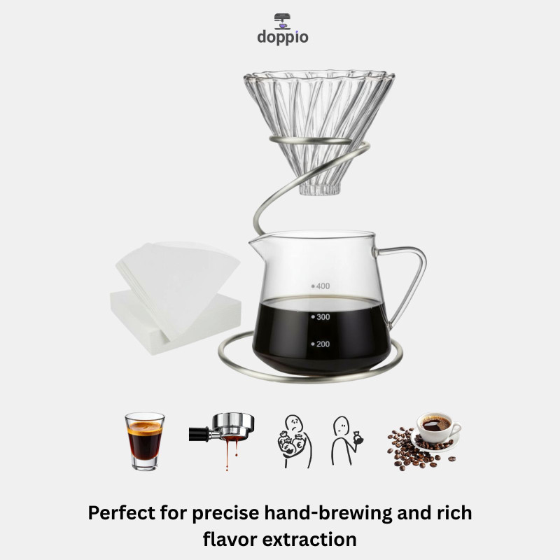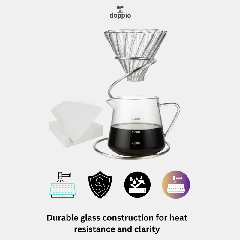 استمتع بتحضير قهوة نقية وعطرية مع طقم القهوة المقطرة الزجاجي، الذي يضم دريبير زجاجي عالي الجودة، إبريق بسعة 400 مل، و100 فلتر ورقي. مصنوع من زجاج بوروسيليكات مقاوم للحرارة لضمان المتانة والاستخدام الآمن. تصميم عملي وأنيق يوفر استخلاصًا متوازنًا، مما يجعله مثالياً للمنزل أو المكتب أو أثناء السفر، وسهل التنظيف والاستخدام لجميع مستويات عشاق القهوة.