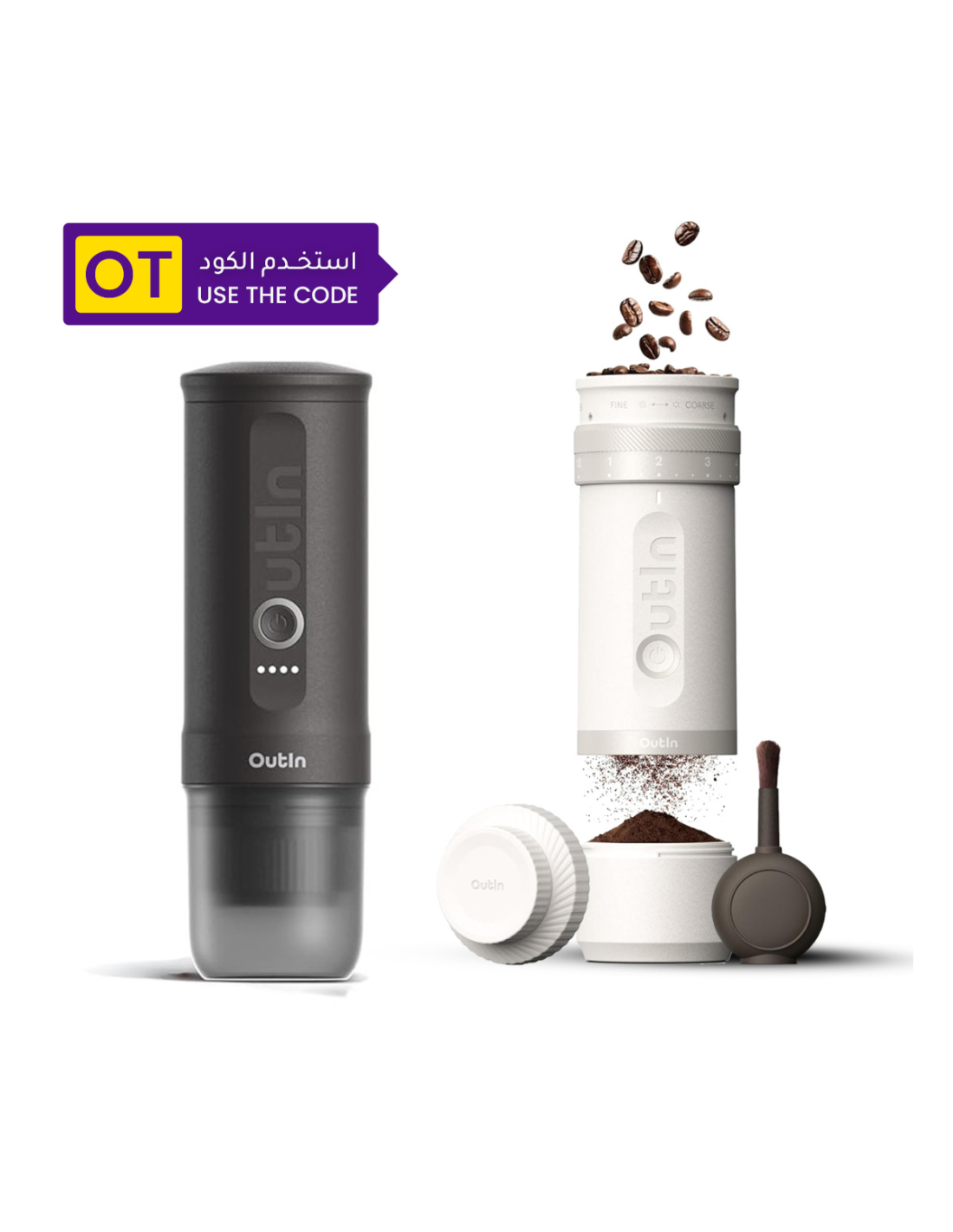 مجموعة اوتين محضرة الإسبريسو نانو باللون الرمادي و طاحونة فينو باللون الأبيض