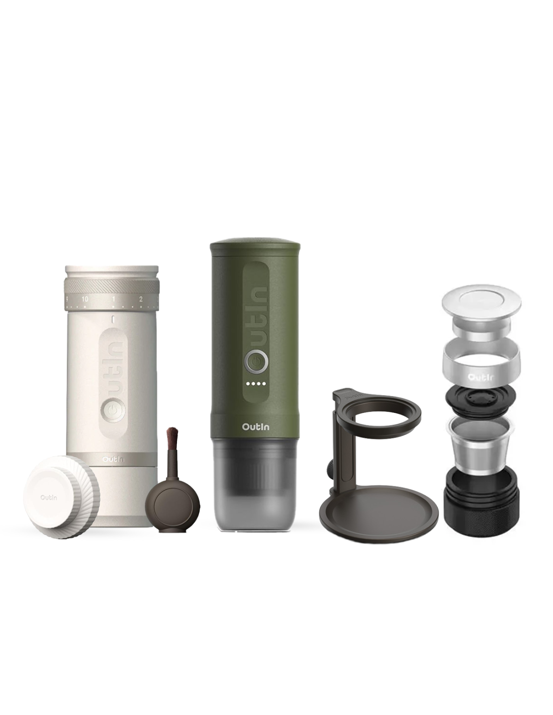 مجموعة اوتين محضرة الإسبريسو نانو باللون الرمادي و طاحونة فينو باللون الأبيض مع إكسسوارات