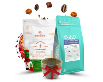 مجموعة هدايا قهوة أرتيزان - مشروب مُختار بعناية لعشاق القهوة الحقيقييناستمتع بتجربة قهوة لا تُنسى مع مجموعة هدايا قهوة أرتيزان الرائعة هذه، والتي تضمّ نوعين من حبوب البن الكاملة المحمصة حديثًا وكوب إسبريسو سيراميك أنيق. مثالية للإسبريسو، أو التنقيط، أو V60، أو المكبس الفرنسي، حيث تُقدّم هذه المجموعة روائح غنية ونكهات جريئة تُرضي جميع الأذواق. مثالية كهدية...