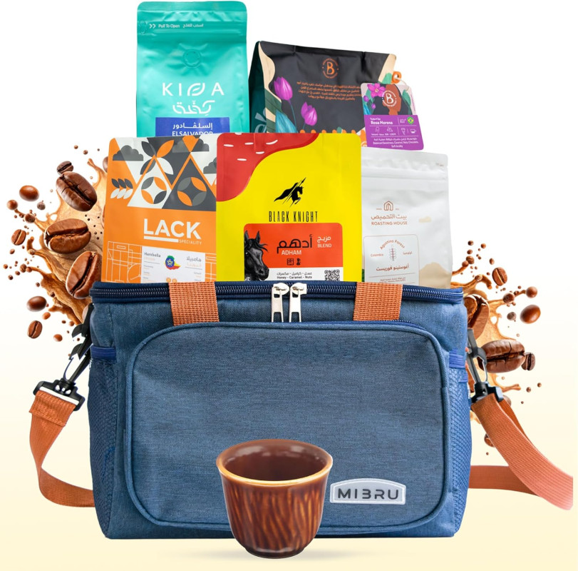 حقيبة قهوة متعددة الجيوب، لون أزرق.