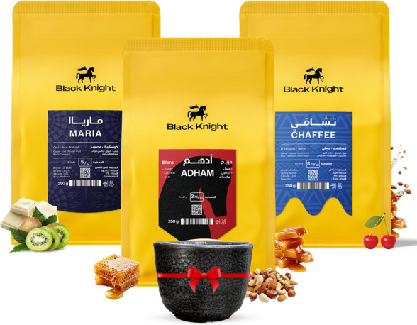 طقم قهوة ميربو بلاك نايت - حبوب آدم وتشافي وماريا للإسبريسو وV60 مع كوب سيراميك