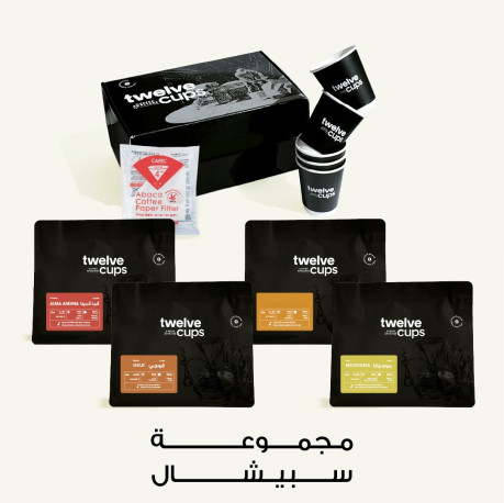 محاصيل قهوة مختصة فاخرة ٤ × ٢٥٠ جم مع فلاتر واكواب هدية