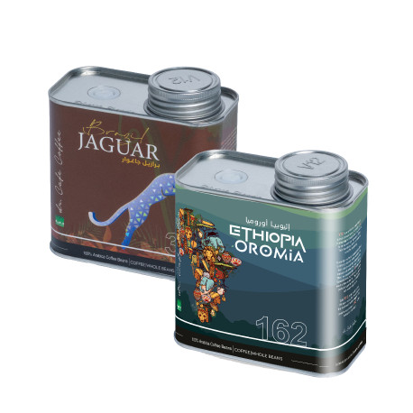 يحتوي الصندوق على 2 من أفضل حبوب القهوة الفاخرة لدى د.كيف تأتيكم بتاريخ حمص حديث وهي: