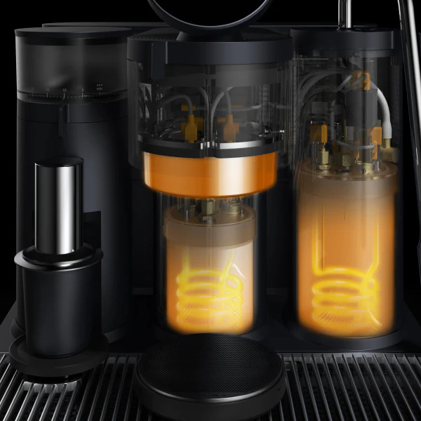 - ثبات مثالي في الحرارة بفضل نظام الغلايتين + PID لاستخلاص متوازن وبخار فوري