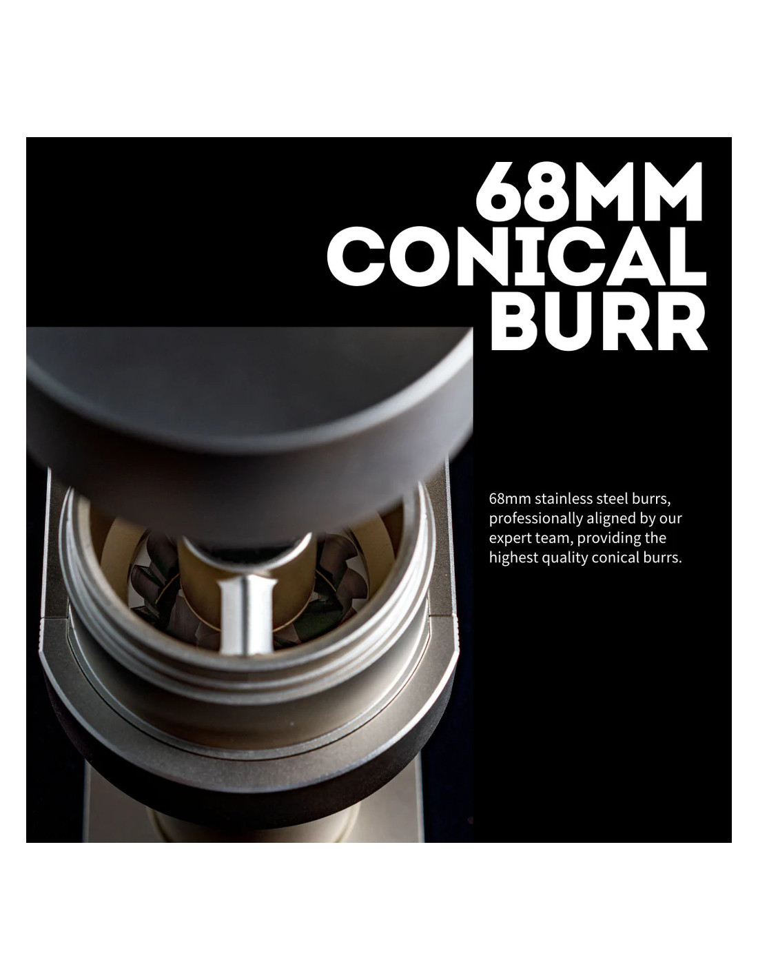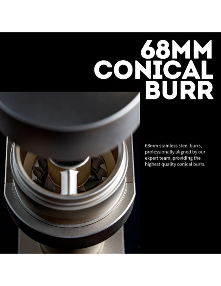 - أقراص طحن مخروطية من الفولاذ المقاوم للصدأ 68 ملم: مجموعة أقراص طحن متميزة توفر توزيعاً موحداً للجزيئات مع تصميم بدون احتفاظ للقهوة - لا هدر للقهوة.