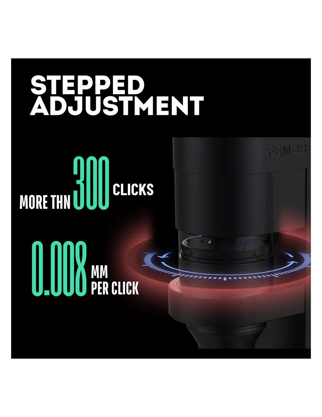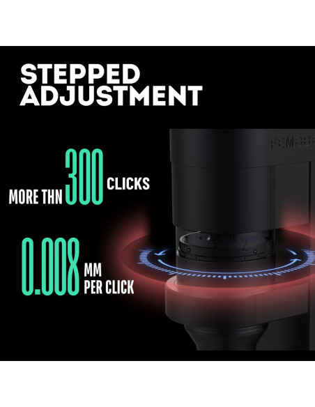 - أكثر من 300 نقرة متدرجة: أكثر من 3 دورات كاملة بدقة 0.008 ملم لكل نقرة للضبط المثالي لجميع طرق التحضير.