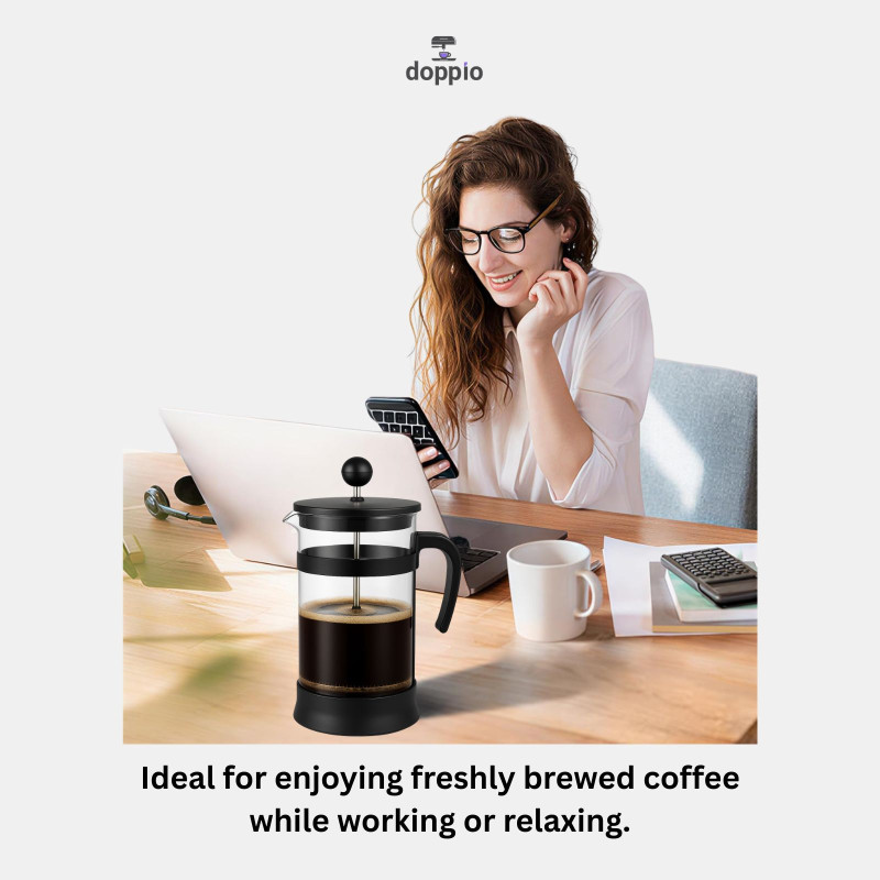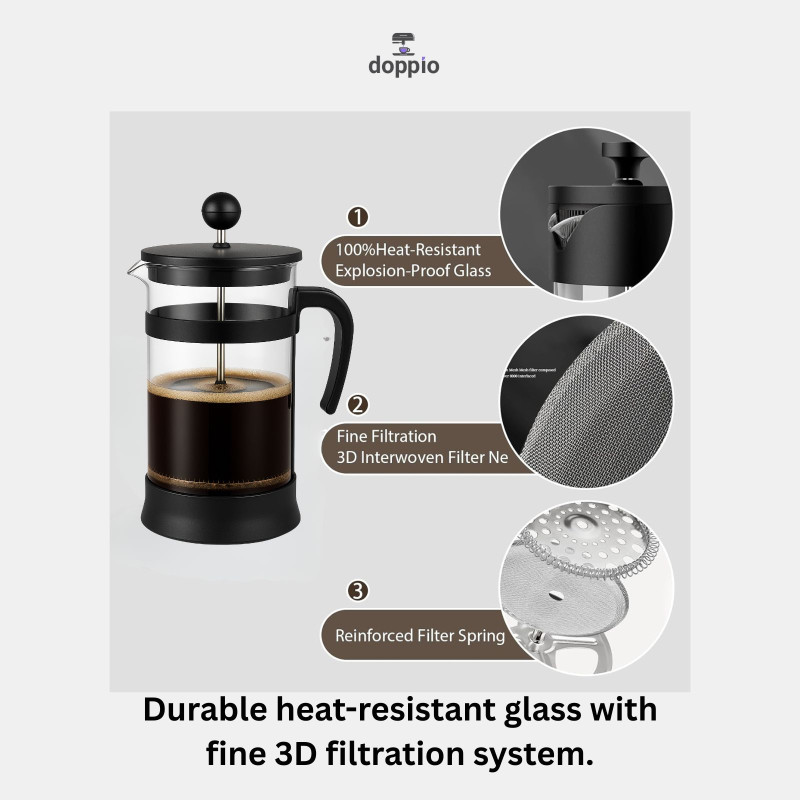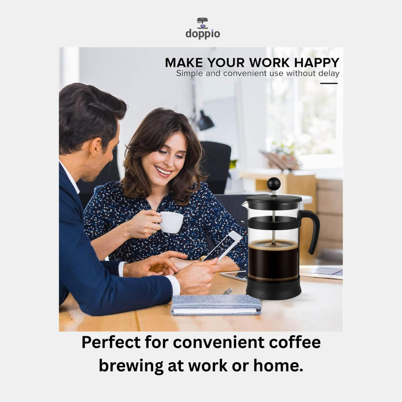 Enjoy rich, full-bodied coffee with this 600ml French press coffee maker, crafted with durable borosilicate glass and a stainless steel frame. Featuring a 3-layer filtration system for smooth, sediment-free results, it delivers superior flavor extraction every time. Perfect for home, office, or travel, this manual coffee press is also ideal for tea and cold brew.