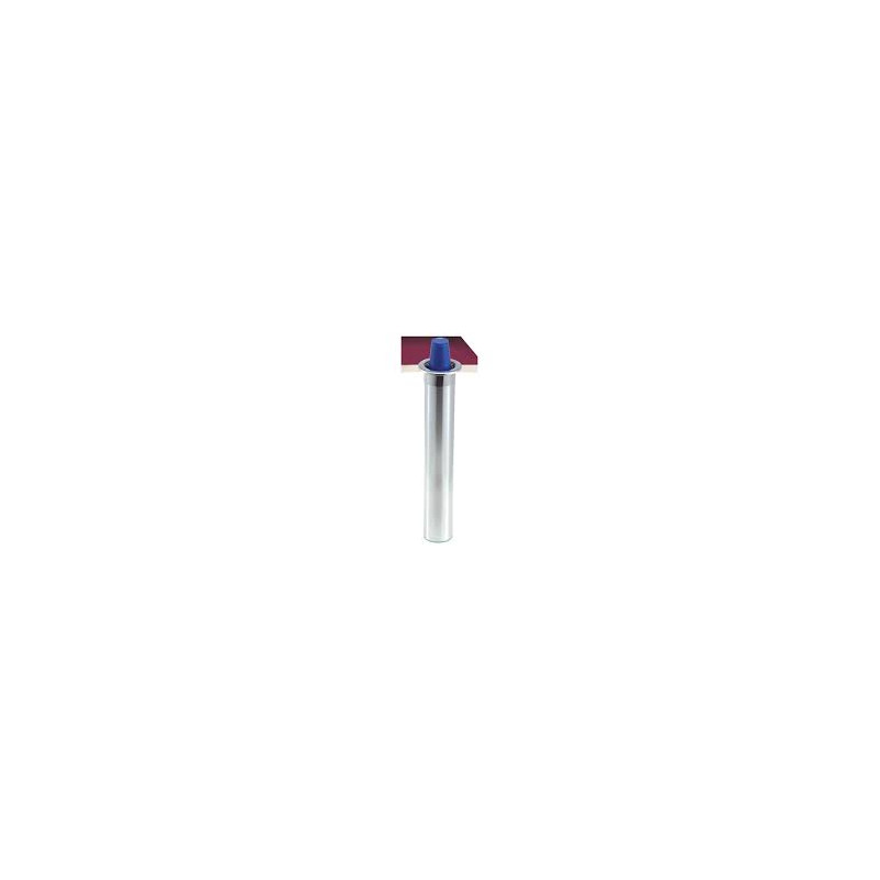 A stainless-steel counter-mount cup dispenser for 6–10 oz cups. Features an adjustable collar, 597 mm tube, and one-at-a-time dispensing — ideal for beverage stations and cafés.