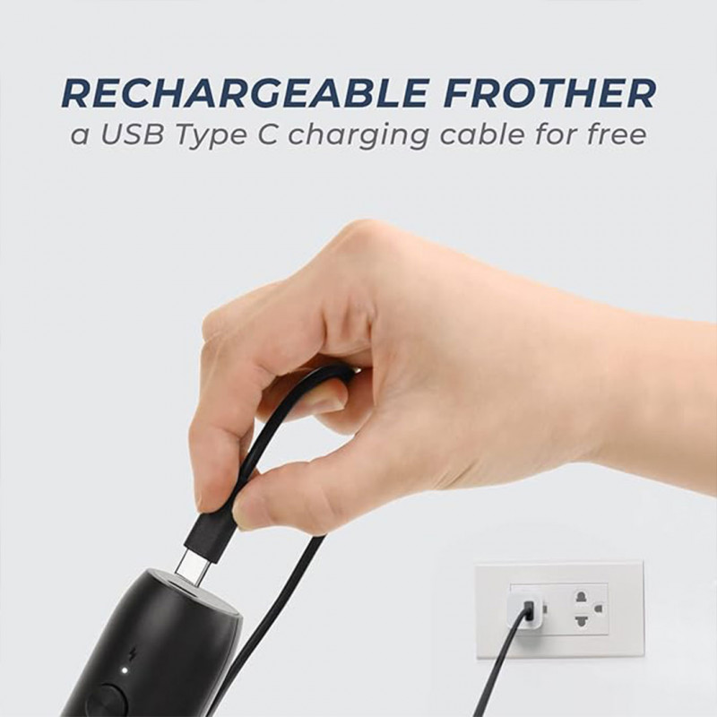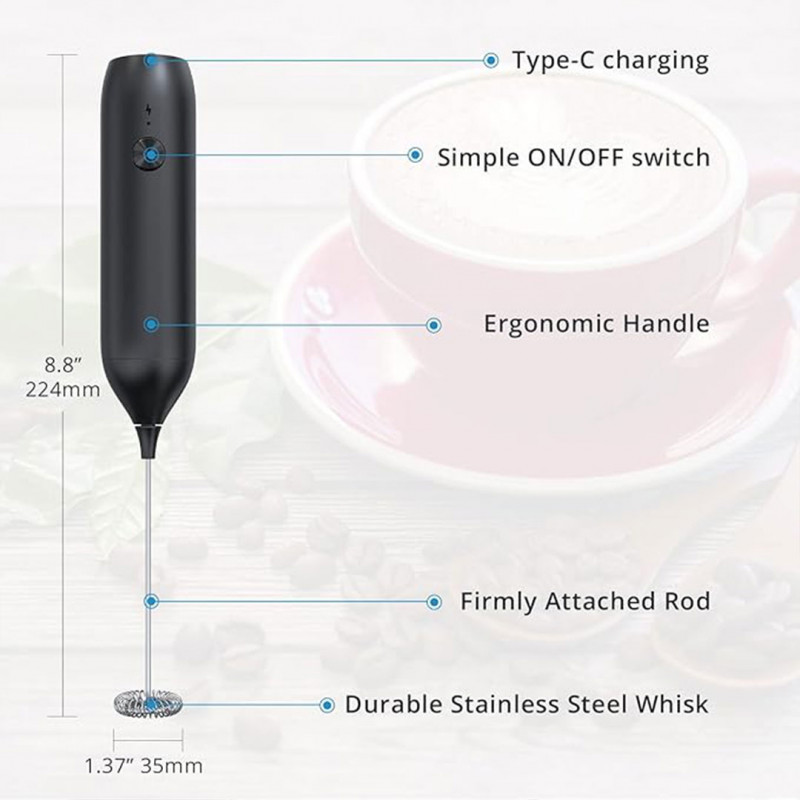 • Handheld milk frothers one-touch push button switch, handle is designed with index finger grooves to prevent the milk frother from slipping out of your hand, simply place it into a 1/3 container with liquid food and it will form a perfect froth.