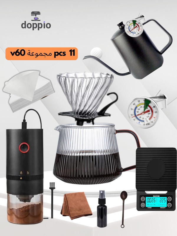 Enjoy barista-quality coffee anywhere with the DOPPIO V60 Premium 12-piece pour-over coffee set. This all-in-one brewing kit includes a dripper, electric grinder, kettle, and digital scale for precise, flavorful extraction. Designed for home use, travel, camping, and desert adventures, it comes with a durable carry case for easy portability—perfect for coffee lovers who value convenience and premium quality.