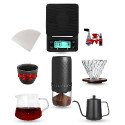 Be a barista yourself at home with Mibro V60 set of 10 pieces to prepare and serve a delicious cup of coffee, an electric coffee grinder, and an accurate electronic scale.