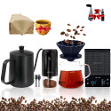 Digital scale for specialty coffee 550ml graduated dripper with thermometer v60 coffee dripper v02 corrugated size suitable for 1-4 cups v60 02 paper filters brown Electric coffee grinder with type c charging 1800 mAh battery 130ml black glass cortado coffee cup Cleaning kit 650ml black glass server serving pitcher Ceramic coffee bean weighing dish Single dose coffee bean bottle