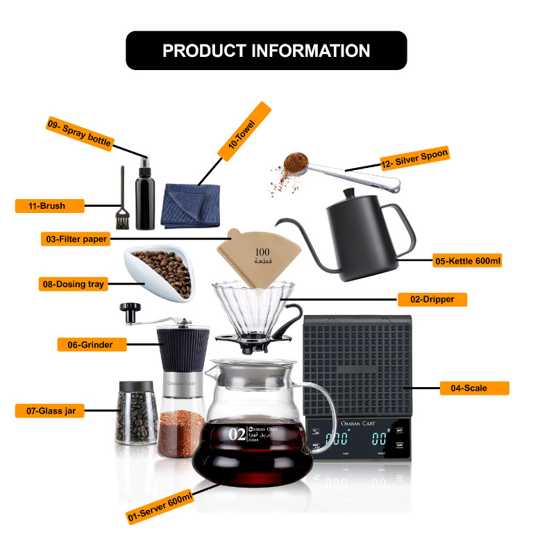 Omran Cart V60 Coffee Set Pour Over Coffee Maker 12pcs Kit coffee set