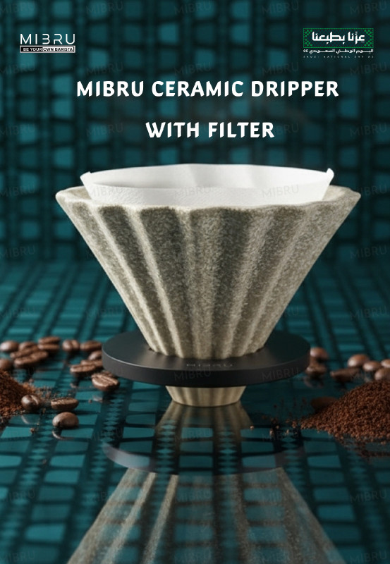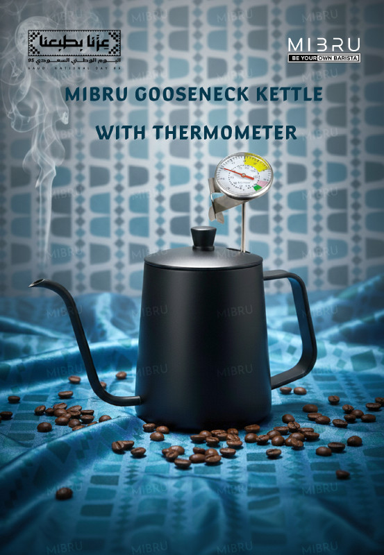 Celebrate Saudi National Day with this premium 9-piece V60 Coffee Set, designed for coffee lovers. Brew perfect V60 pour-over coffee at home or office with precision and style. Includes ceramic dripper, white filter, server, gooseneck kettle, manual grinder, scale, thermometer, ceramic cup, and coffee bean water sprayer.