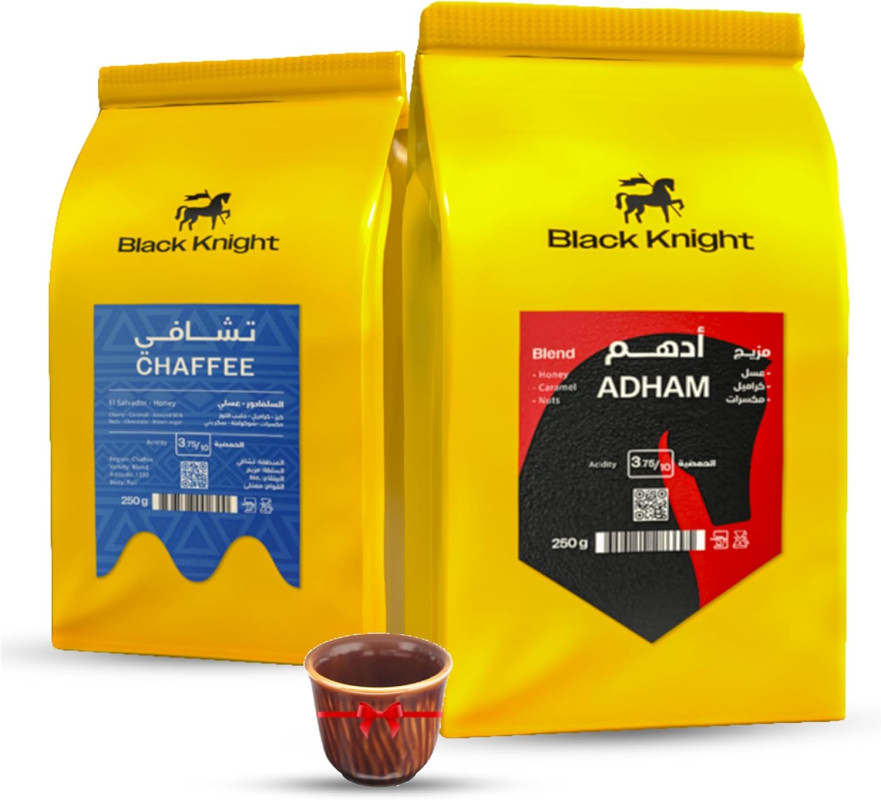 1 X COFFEE BEAN BLACK KNIGHT ADHAM MIX FOR ESPRESSO AND FILTER 250G 1 X COFFEE BEAN BLACK KNIGHT CHAFFEE ELSALVADOR 250G