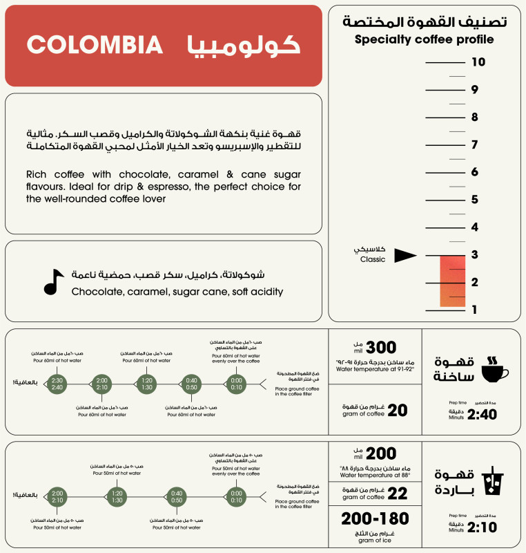 Colombia Excelso Coffee offers a rich and diverse flavor experience that reflects the quality of Colombian coffee. Originating from Colombia, this coffee features a medium roast level and distinctive notes of chocolate, caramel, and sugar cane. The beans are processed using the washed method, which preserves the purity of the flavors and enhances the coffee’s taste. Ideal for drip brewing and espresso, Colombia Excelso is the perfect choice for those who appreciate a well-rounded coffee flavor.