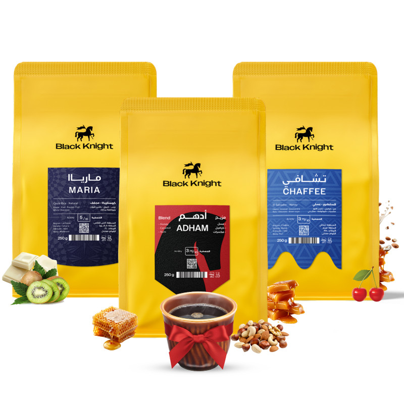 The MIRBU BLACK Knight Coffee Set is a premium selection of three artisan coffee blends: Adam, Chaffee, and Maria. Carefully roasted to suit both V60 pour-over and espresso brewing, this variety pack offers an unmatched coffee experience.