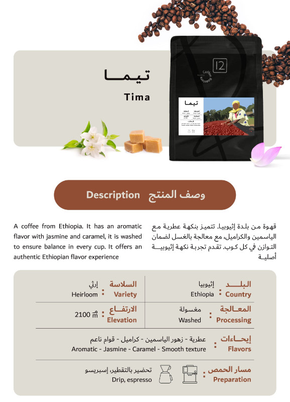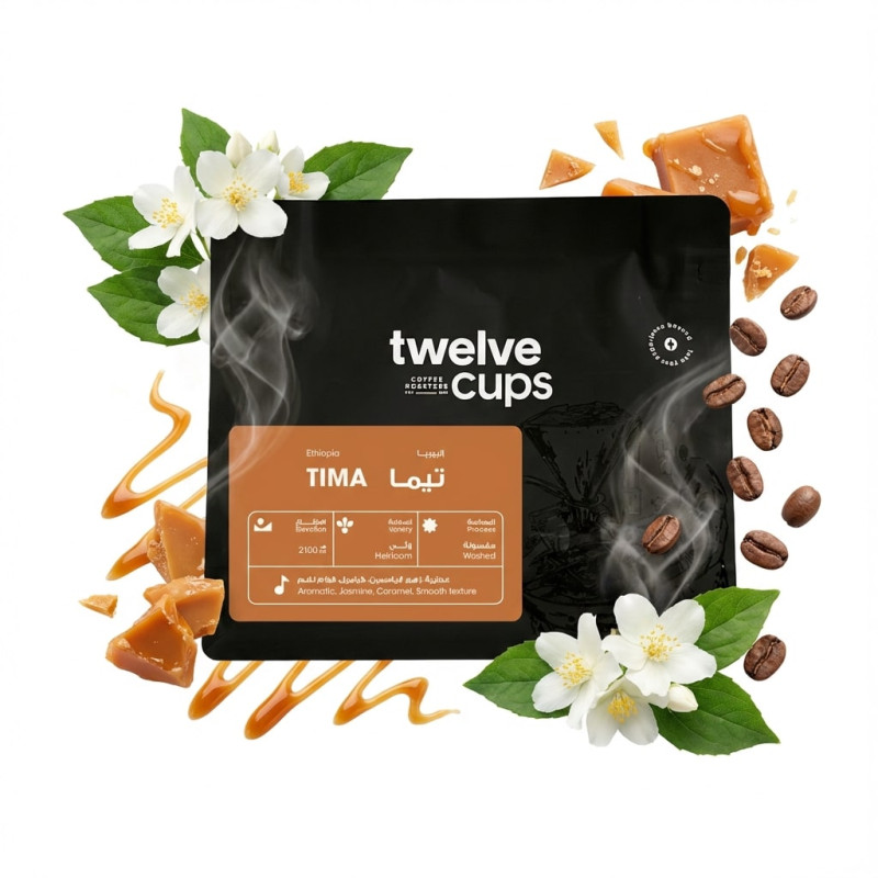 Discover the refined aromatic notes of the exceptional Ethiopian Tima coffee, with hints of jasmine flowers and a smooth caramel touch.