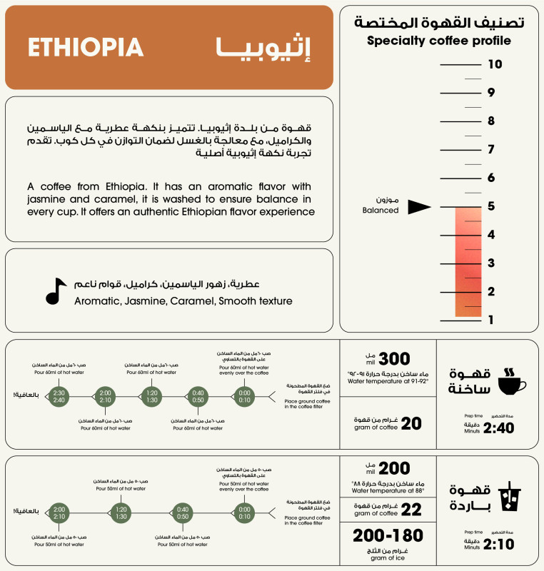 Discover the refined aromatic notes of the exceptional Ethiopian Tima coffee, with hints of jasmine flowers and a smooth caramel touch.