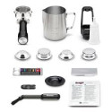 • Included accessories: The machine comes with a 54mm stainless steel portafilter, a 480ml stainless steel milk jug, 1 and 2-cup filter baskets (single and dual wall), a water filter and holder, a trimming tool, and various cleaning supplies.