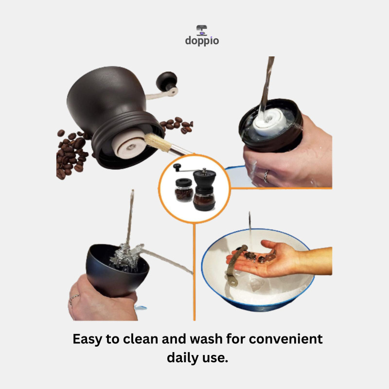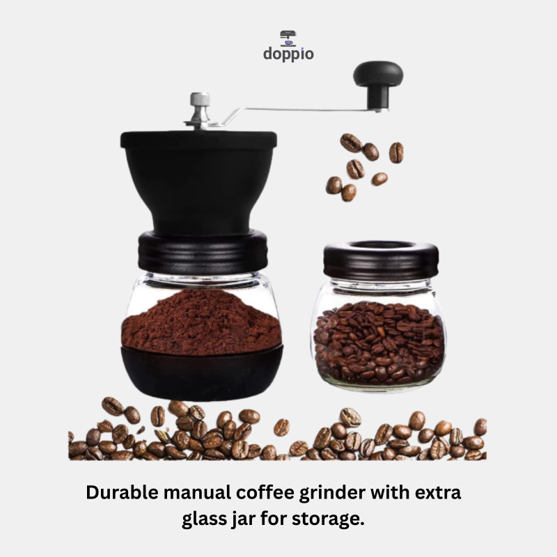 Enjoy freshly ground coffee anywhere with this manual coffee grinder featuring a precision ceramic burr for consistent grind size. Designed for espresso, pour-over, and French press, it includes an extra glass jar for convenient storage. Compact, durable, and easy to use, it’s perfect for home, travel, camping, or office use, delivering rich flavor and aroma in every cup.
