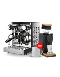 Now, for a limited time, get Rhinowares Milk Pitcher for free! This bundle contains: Rocket Appartamento Espresso Machine Color- White Eureka Oro Mignon Single Dose Coffee Grinder Color-Black