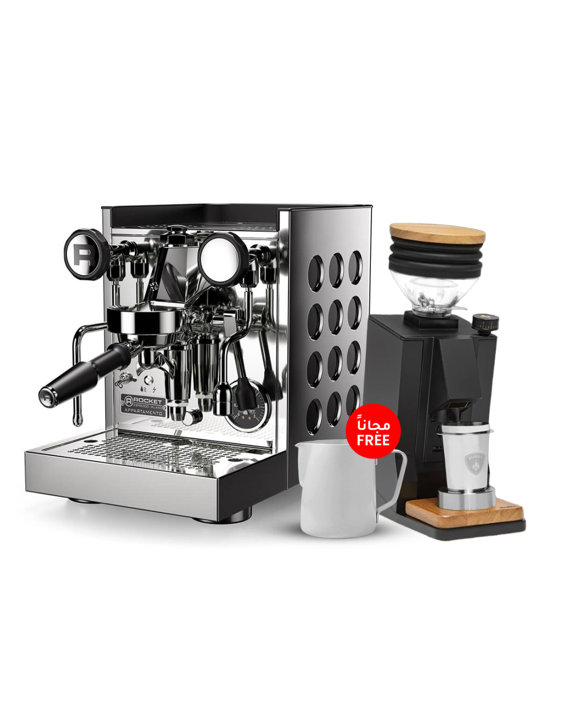 Rocket Appartamento TCA Black & Eureka Single Dose Pack + Rhinowares Milk Pitcher